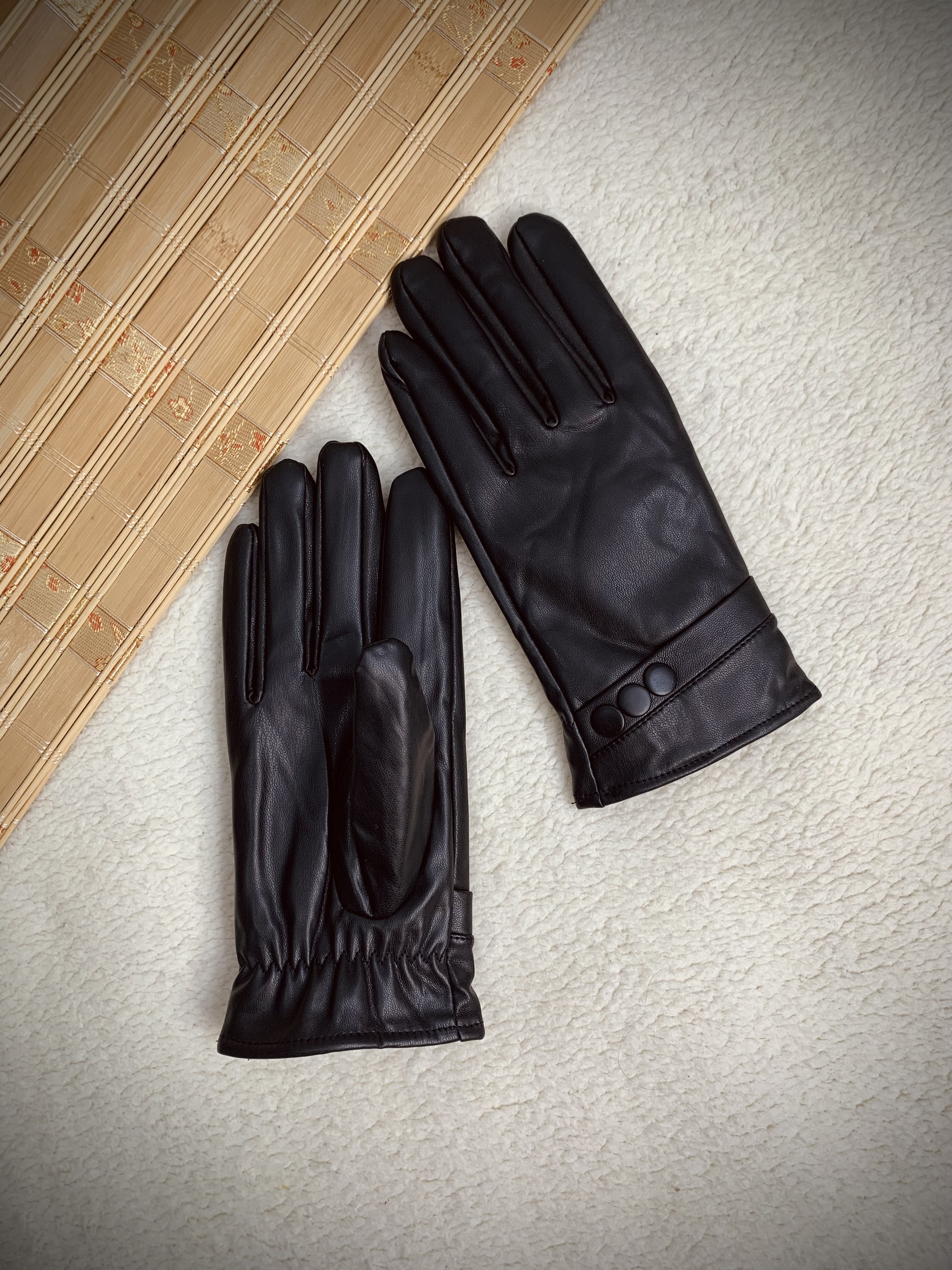 از چرم نرم و باکیفیت ساخته شده، داخلش خز لطیف داره که دستهاتو حسابی گرم نگه میداره. طراحی سهدکمهای روی مچ هم علاوه بر زیبایی، باعث فیت بهتر دستکش میشه.