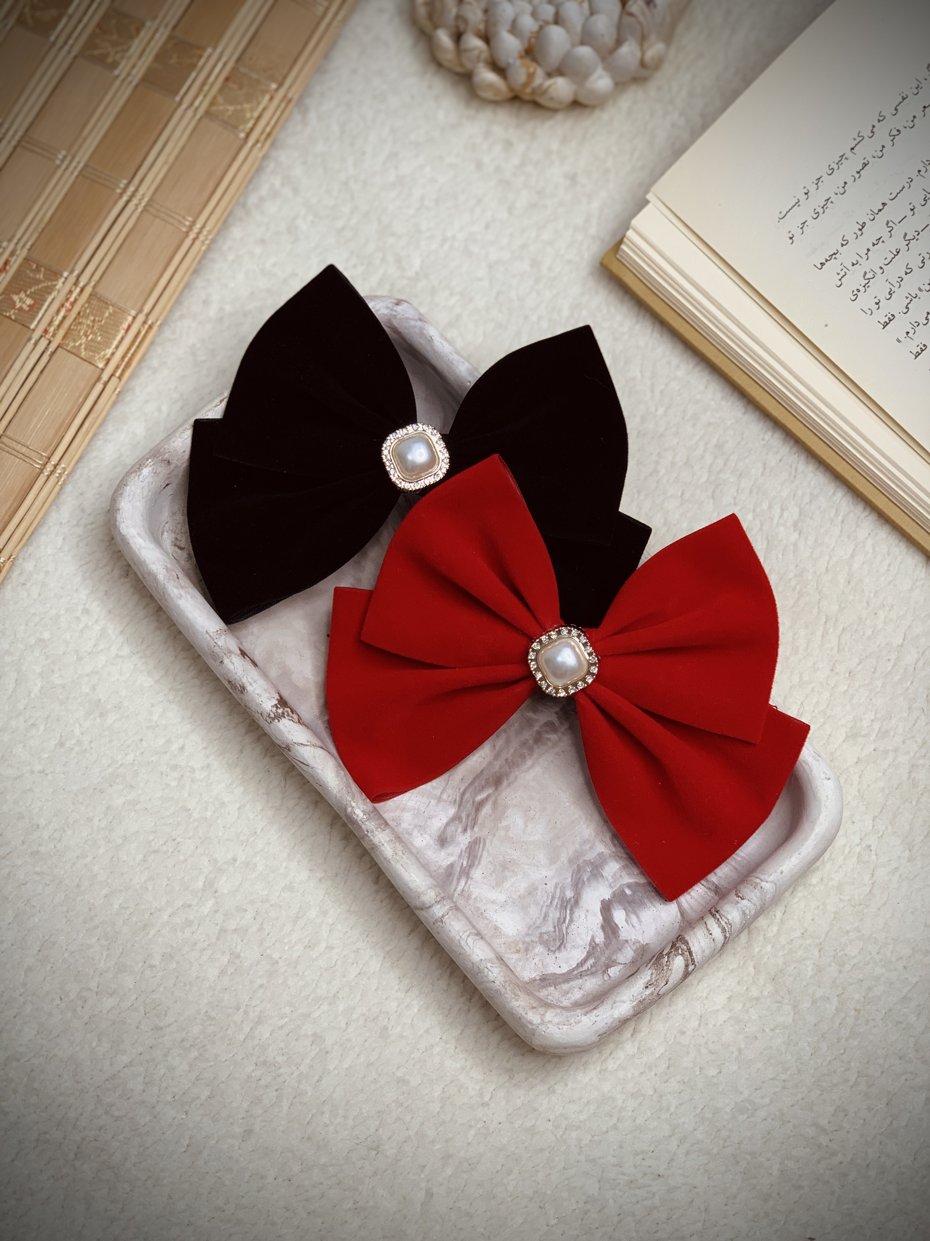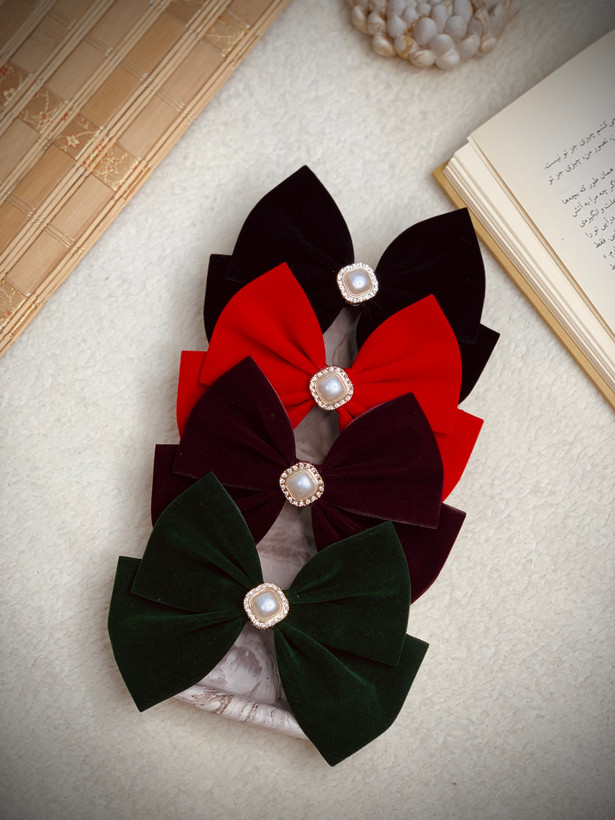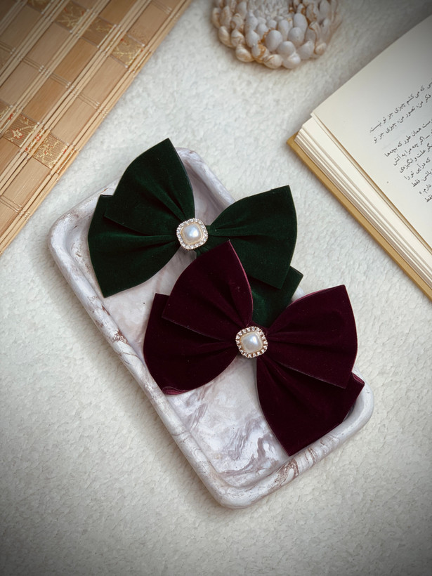 گیره مو پاپیونی مخمل نگیندار، انتخابی ظریف برای استایلهای شیک و دخترونه. ترکیب مخمل لطیف با نگینهای براق، این گیره رو به یه اکسسوری خاص برای روزمره و مهمونی تبدیل کرده.